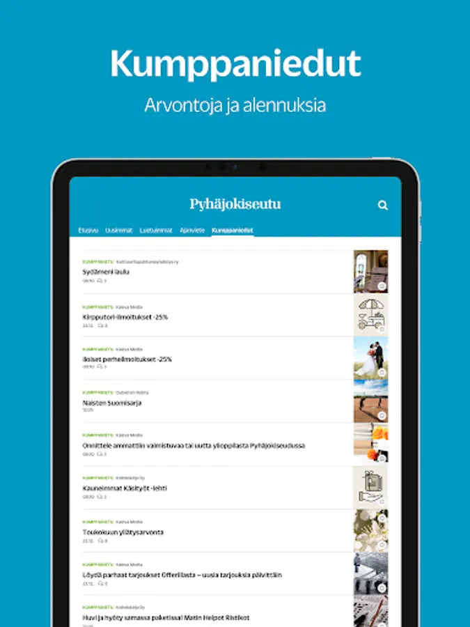 In the Pyhäjoki Region app, you will find the latest news, phenomena and stories of locals in the Pyhäjoki Region every day. Read constantly updated news feeds, magazines, and rich online stuff with pictures and videos. If you want, you can receive notifications about the most important news on your phone and with the search feature you will find what you are looking for. In the app you will also find entertainment, trellis, sudoku puzzles and partner benefits in the Pyhäjoki region.