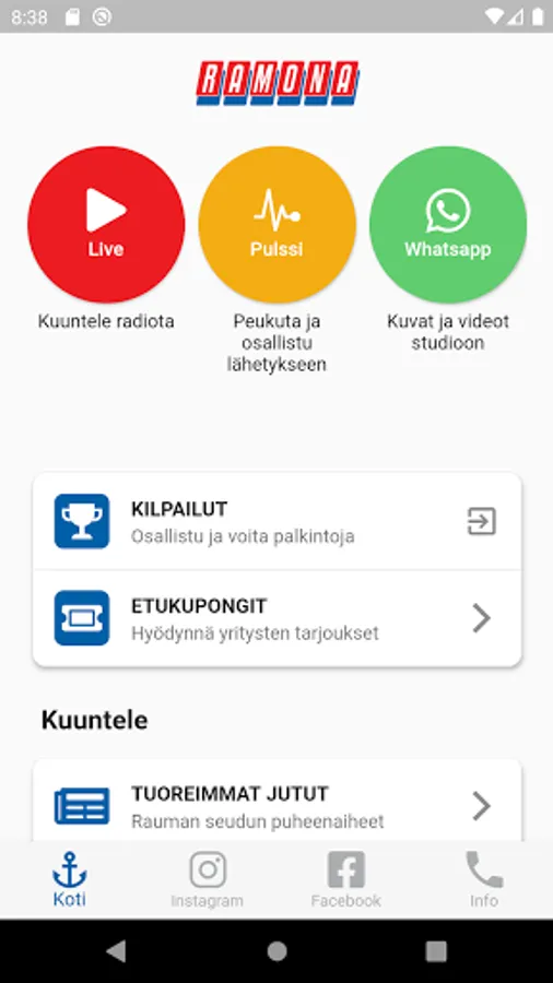 The Ramona app is a new distribution channel for Rauma local radio on your mobile device.