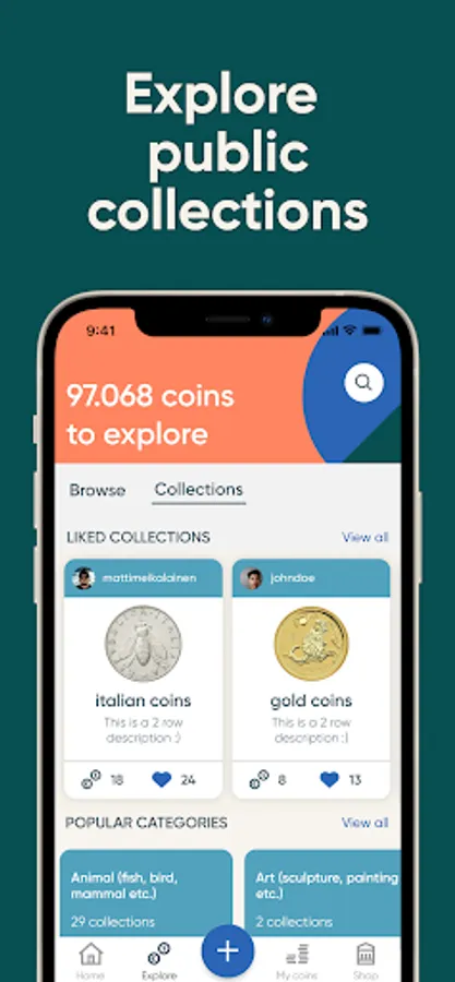 You can share your collections with the Coiniverse community. Browse popular and interesting collections by other Coiniverse users, and share your own favourite collection.