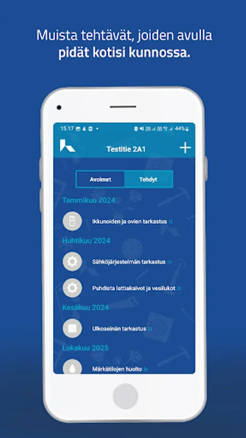 Remember what maintenance needs to consider when owning a home? No need, because KotiApp does it for you! KotiApp helps you maintain your home and makes it easy, wizard and regular.