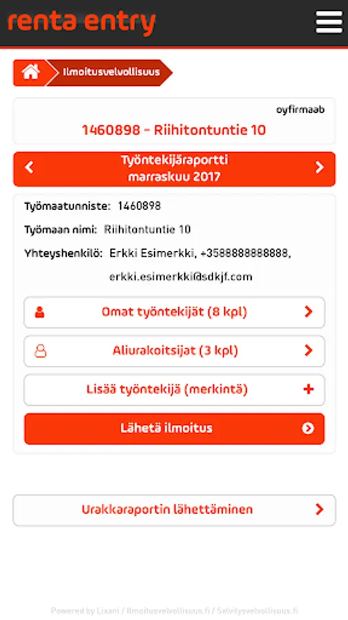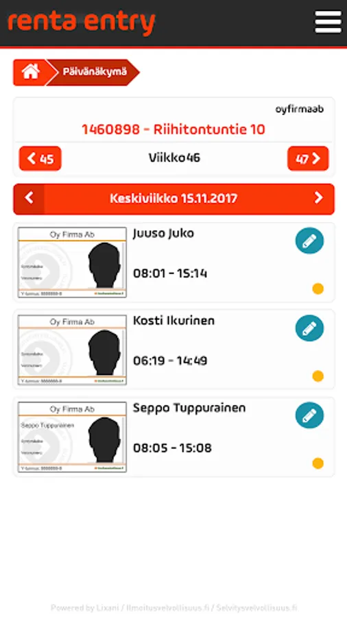 Renta an entry by means of easily take care of your construction company worksites access control. Access rights can be determined ports, time of day and the weekday and weekend days, according to. The application is able to take into account also the employees of subcontractors and their työaikamerkintänsä. The application allows you to store Site-pictures and important documents. In addition, you can make the tax authorities to construction workers and job announcements.