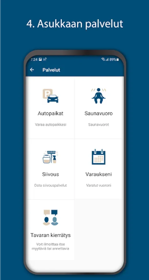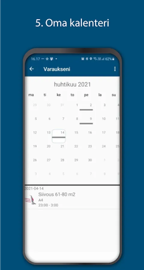 You can also book a parking space, sauna shift or even a laundry room - according to the services available in your condominium. If you wish, you can order various paid additional services, such as cleaning, through our application from our local and reliable partners.
