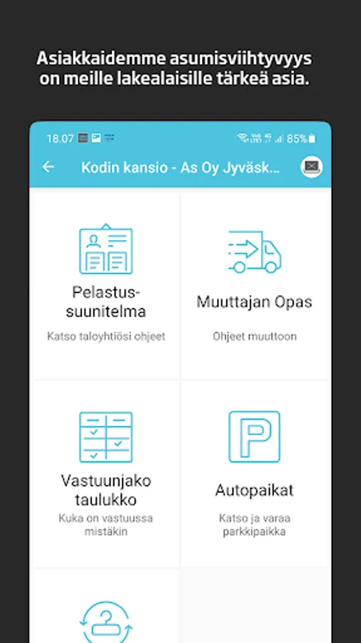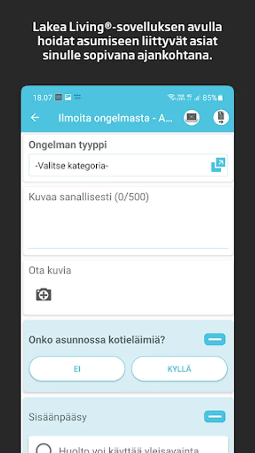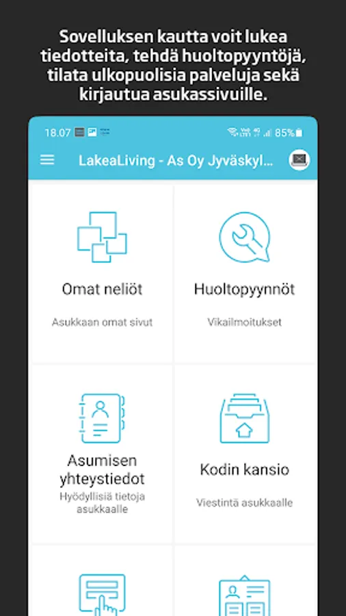 Lakea Living improves your living comfort by bringing housing-related information to an electronic transaction channel. The service is intended for Lakea customers. As a resident, partner or board member, you can easily access housing-related matters from one place. Through the application, you can read bulletins, make maintenance requests, order external services and log in to the resident's website to take care of matters related to the tenancy or partnership.