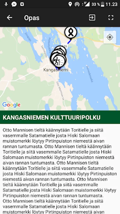 On a tour conducted by a guide Kangasniemen cultural path. Path presents Finland's most beautiful kingdom of the center called Kangasniemen and its history. Quite a number of stories can pack the place!