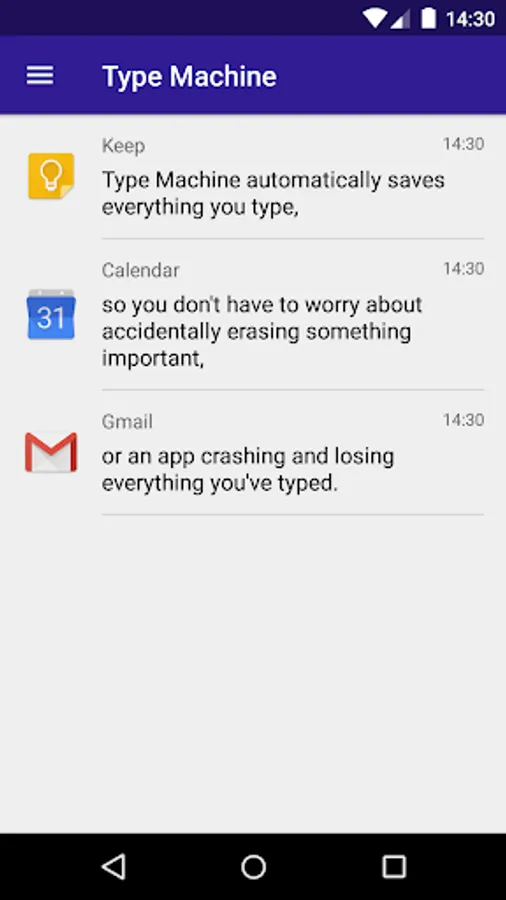 Have you ever typed something and then accidentally erased it? Written down something important and couldn't find it again? App crashed and lost everything you wrote? With your own Type Machine, that's no problem.