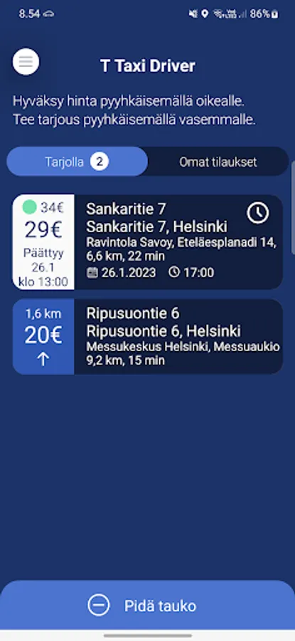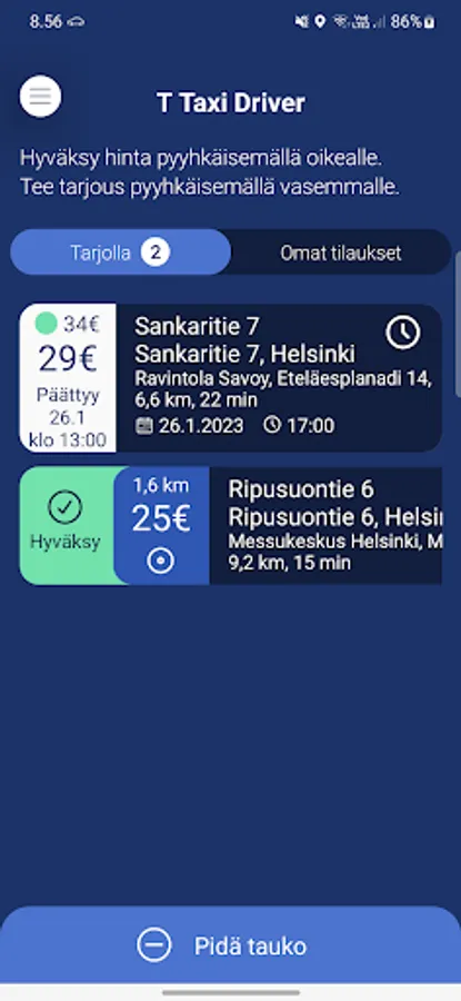 The app for T Taxi drivers to see and accept new taxi rides. The best feature is that you as a driver get to decide when the price is right for the gig.