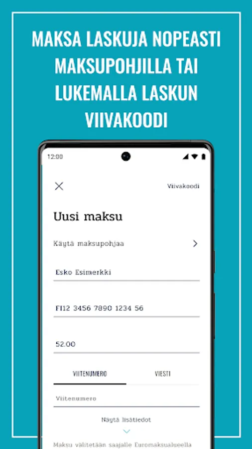- Pay payments quickly with payment templates or by reading the invoice barcode