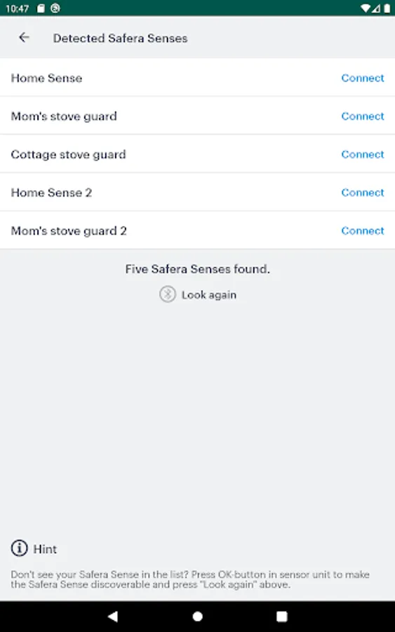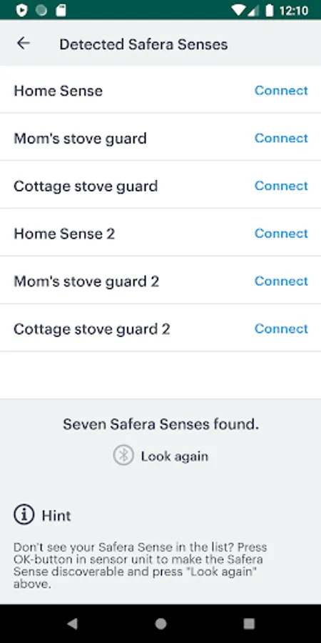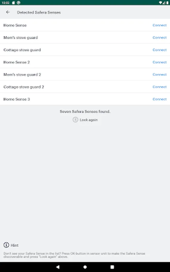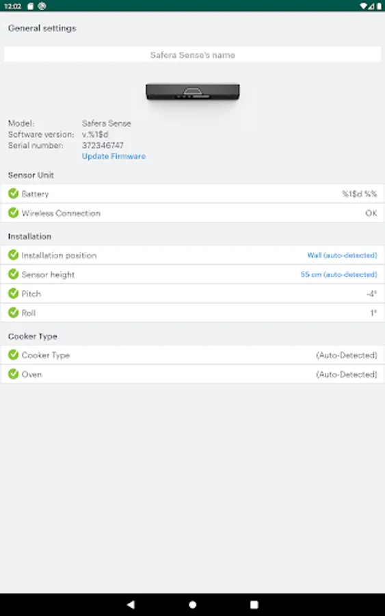 Safera App is connected via Bluetooth to one or many Safera Sense units (many units can be connected to one app simultaneously). It tells if you have installed your Safera Sense correctly and the sensors are getting the best possible readings from your stove.