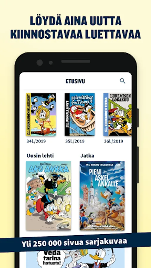 In addition, the search function helps with a wide range of tricky questions, such as which series said "We live in hard times, friend good"? The Aku Ankka digital service has enough to explore, even for the most demanding anchor, and the collection is updated every week. Diving goggles for your eyes and a beak above the serial sea!