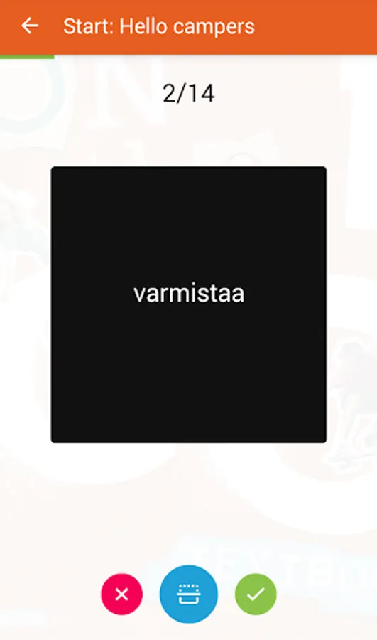 Alphabetic glossary and turning the cards work from a foreign language into Finnish and vice versa. The student can practice the words of a particular partition, until he knows them. If desired, he can practice again only those words that he does not know how the previous time.