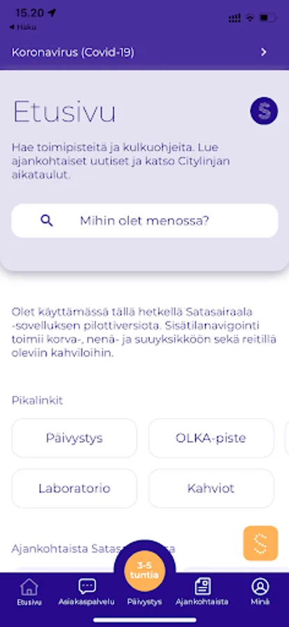 For other departments and locations, you will find their location. If you have given the app permission to locate, you will also see your own location.