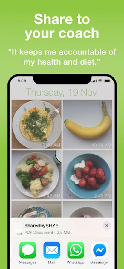 9. Simple to export your visual food diary with a professional (coach, personal trainer, nutritionist, or doctor)