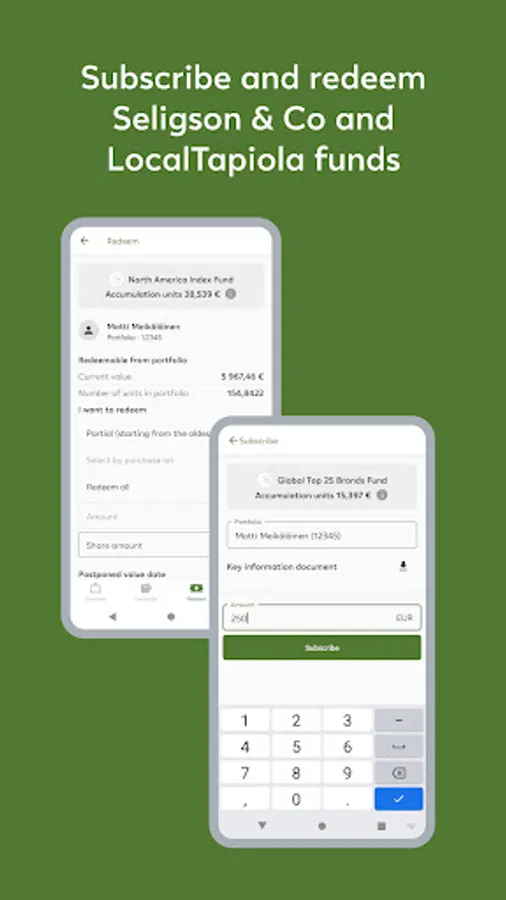 Seligson & Co Taskusalkku is a convenient way to manage your fund investments anytime and anywhere. In Taskusalkku you can follow the performance of your fund investments, make subscriptions and redemptions, and read our popular quarterly review and Phoebus blog. You can also find other useful information on investing in funds in Taskusalkku.