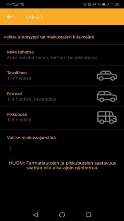 Taxi1 is a free application that allows you to order a taxi, track the progress of a trip and pay for a trip faster than ever. With the Taxi1 application, you order a Taxi unit taxi in the Kuopio, Siilinjärvi and Joensuu areas.