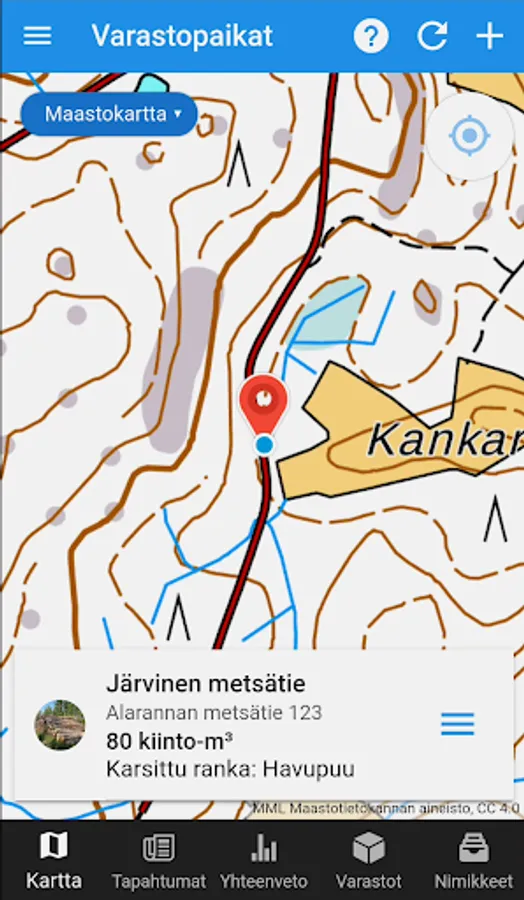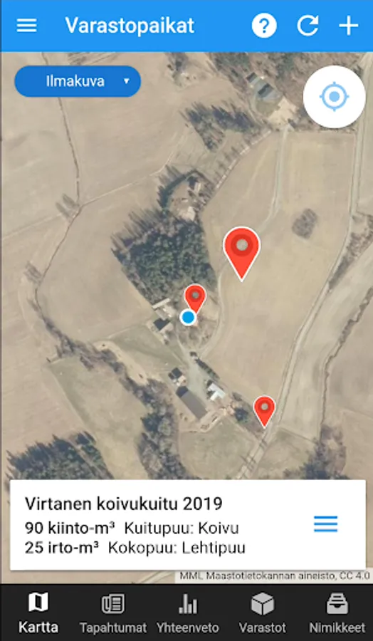 Sirppi Energia maintains inventory information by tree species and energy fraction. The amount of wood chipped by the roadside will go to the log storage for a few clicks to the correct amount of wood. You can also easily find the oldest warehouses or storage locations that contain a specific item.