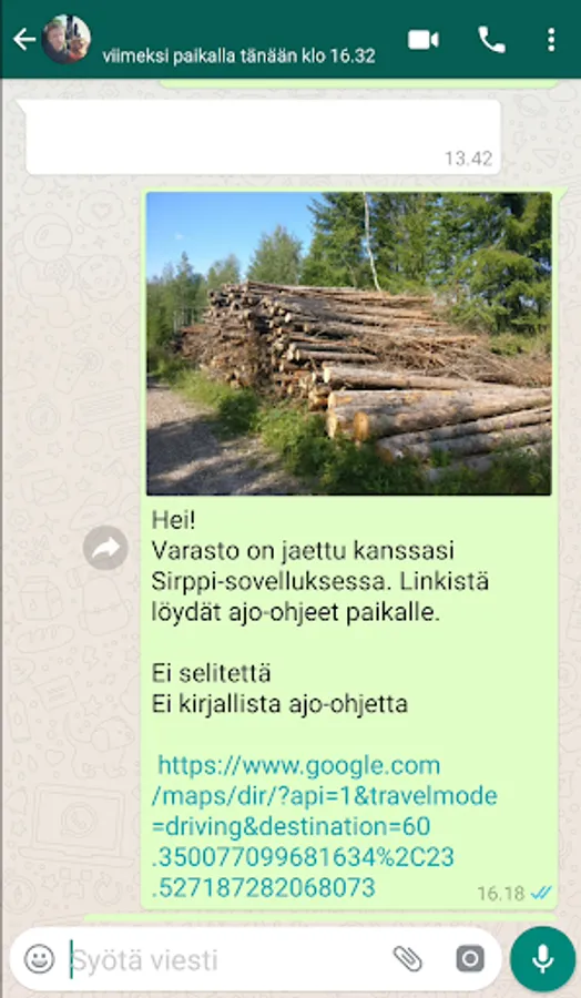 The location of the warehouse can be divided among others. WhatApps and email. The truck driver and chopper get a photo of the storage location and a link to the Google Maps Driving Directions.