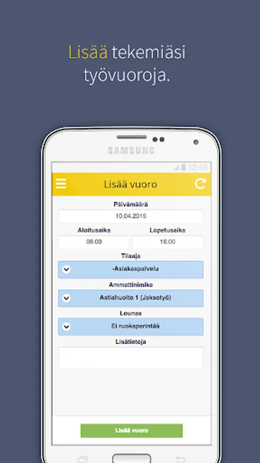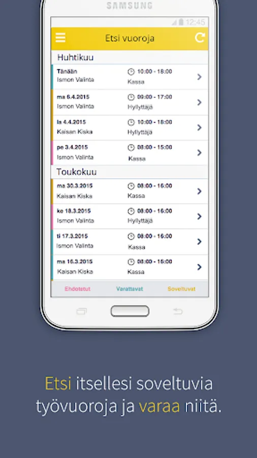 SOL mobile app brings the employee's own extranet services for free on your smartphone and tablet computer. You may receive one of the first shift proposals and book yourself the most suitable among them. In addition, you may want to get a turn to proposals push messages directly to the mobile device's screen. through the application you can always check coming next shift information and to check the location of the work site map. You can subscribe to changes made in shifts, as well as increase frequencies have already been made.