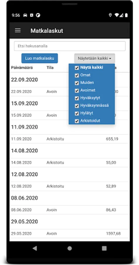 Of course, travel and expense invoices with domestic and foreign per diems, mileage allowances and a multi-step approval cycle are also included. Create a travel invoice on the go or view and edit old travel invoices. You can also save the trip based on location information. Start your journey, put your phone in your pocket and when you arrive you will find both mileage and route information with addresses.
