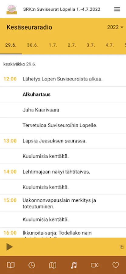 The Kesäseurat application is your guide to the big summer clubs: Summer clubs and college clubs. In the application you can find club programs, guide maps and opening hours. You can listen to club speeches and Kesäseuraradio and watch live club broadcasts.
