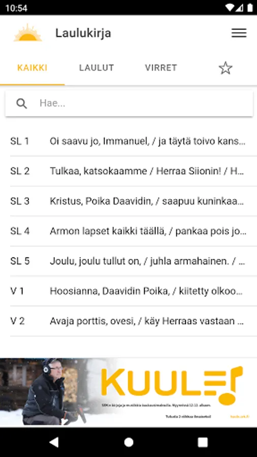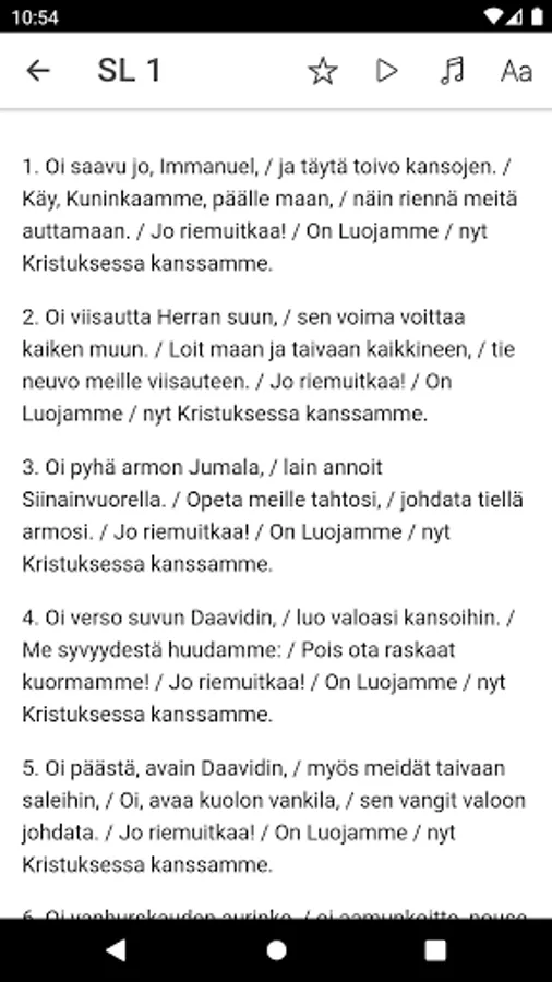 This is a digital hymnal, an app for songbooks of LLC, SRK and SFC. You can purchase desired content as in-app purchases. English-language content is from Songs and Hymns of Zion, published by Laestadian Lutheran Church (LLC). You can also purchase notation and sound files for the songs in the app. You can order printed songbooks, the accompanying chorale book and recorded albums of songs on the LLC website llchurch.org