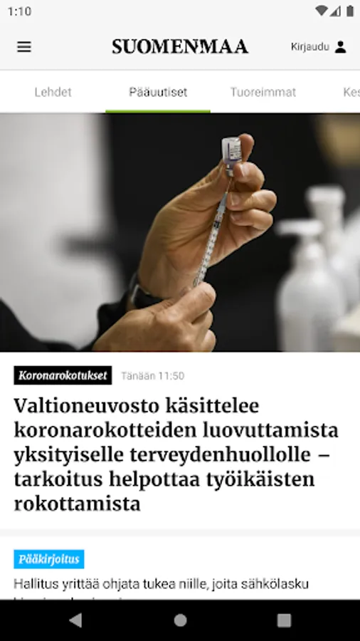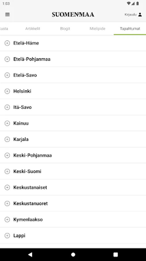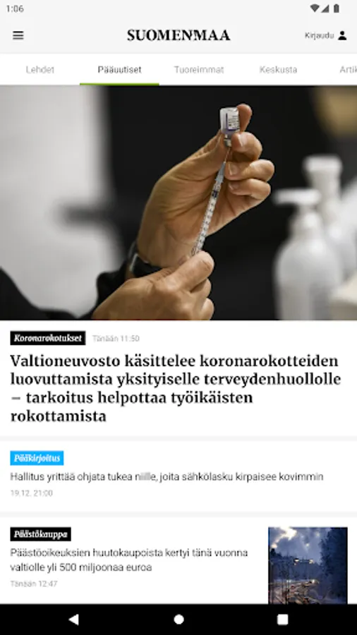 Suomenmaa's application brings the network's free news offering to your device. Suomenmaa reports daily on Finnish politics and social events. The application also contains news from abroad and the economy.