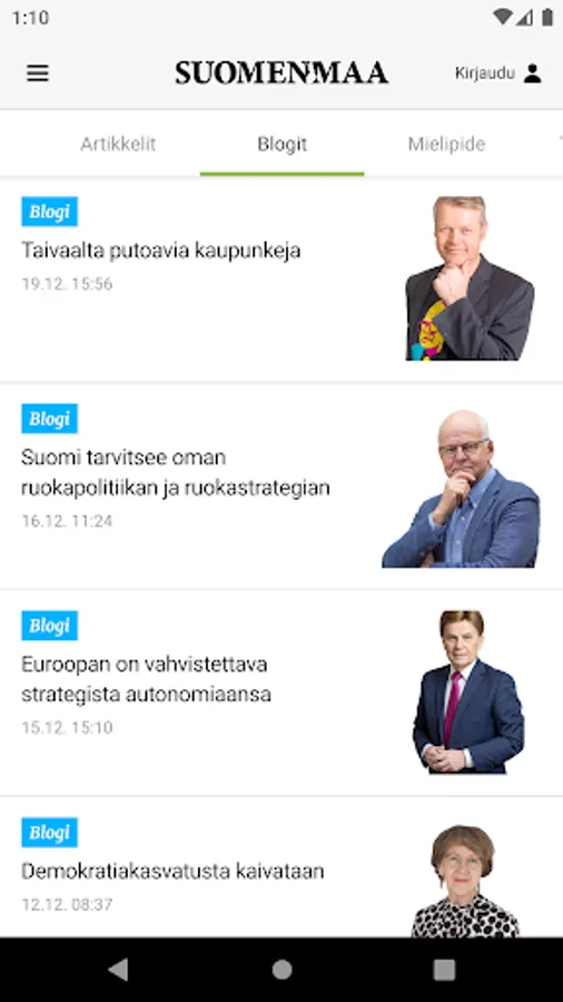 On the blog section of the main supporter of the centre, you can also see a lot of writings by non-centrists. The voice of the people in the center can be seen most strongly in the Puheenvuoru column, where many of the party's leaders write. Finland's editors present their nascent observations in the Apollon tyätijät blog.