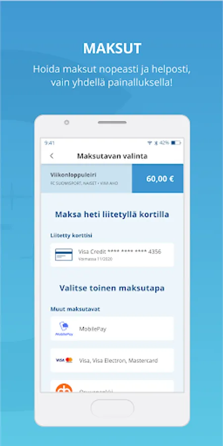 An active person creates his own Sport account in Suomisport, which allows him to easily manage his own, his children's and, as a club user, his own club's sports daily life.
