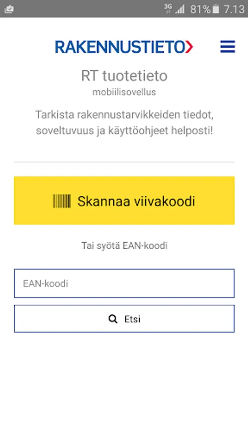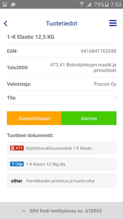 Signed-in users can register their products in the design, or directly installed RT The contract the contractor's product information app. RT contractor's product information app for logging in Building Information Information Service codes. Information service IDs can be obtained by registering at www.rakennustieto.fi.
