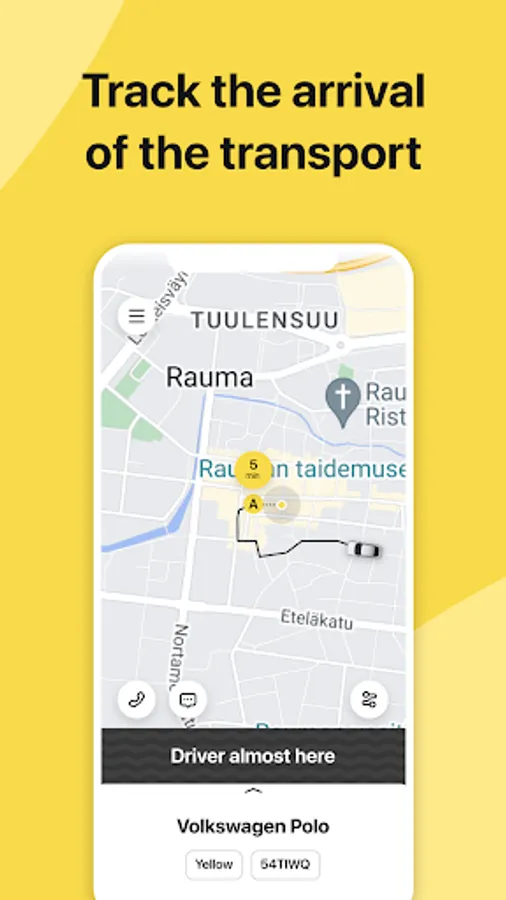 4. Professional taxi drivers licensed to operate in Finland. Our application will prompt you all the necessary driver info: their car and contact information. Smart algorithm assigns the nearest drivers to pick you up, so that you don't have to wait for transport very long.