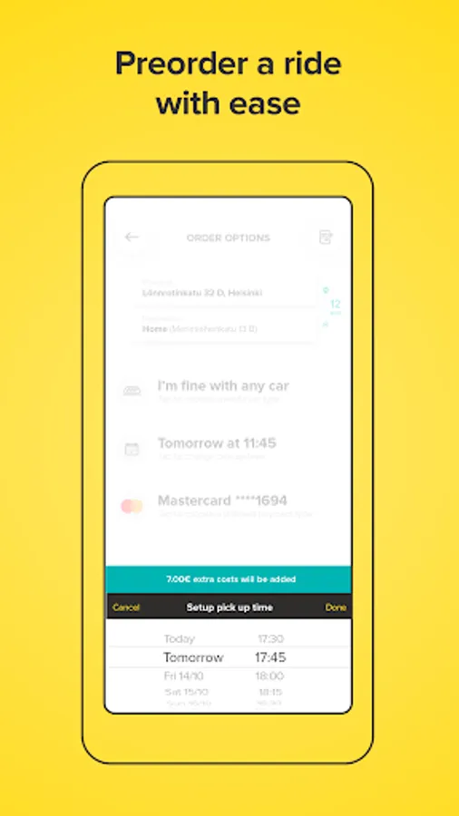 You can order a taxi for a pickup right away or for later. The app makes pre-ordering smooth and easy, ensuring a ride for any moment in time you wish.