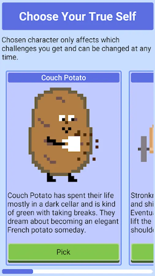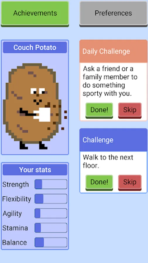 Pick a character and complete their exercise challenges to develop your stats and yourself!
