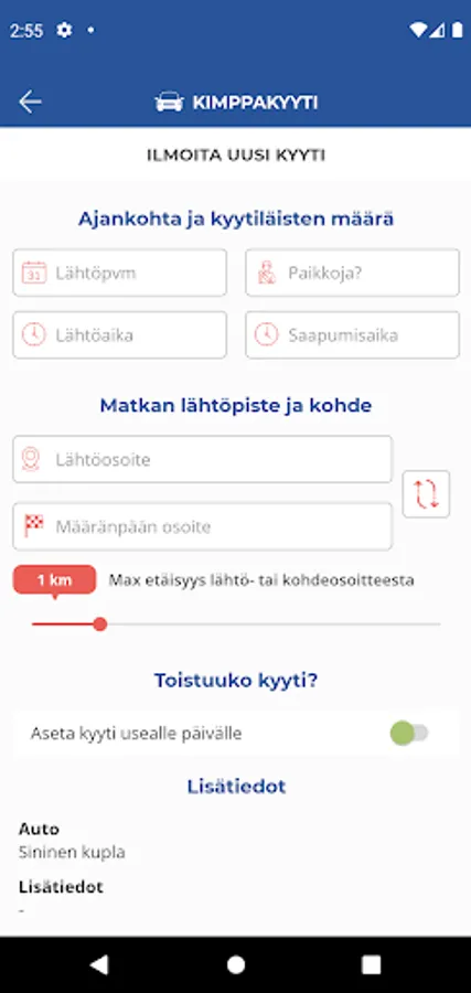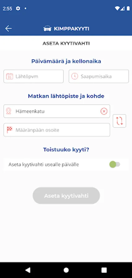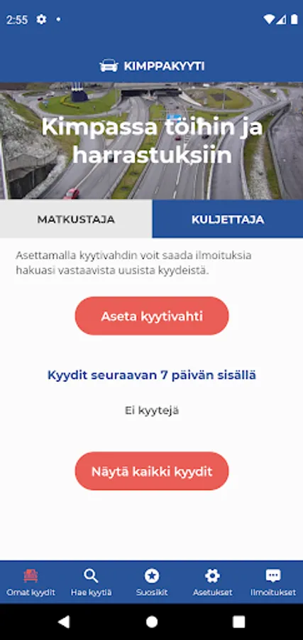 - Set a ride alarm, you will be notified when a suitable ride is available.