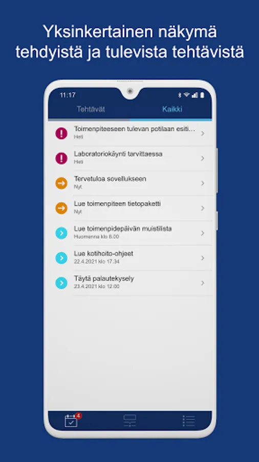 TaysPolku is a mobile application for patients and patients' families, which supports, instructs and reminds them of important stages of treatment. For example, you will receive reminders for the application of important preparation instructions before the procedure, a pre-information form to be filled in and a description of the entire treatment path, so that you are always aware of the next steps in the treatment process.
