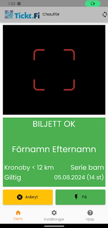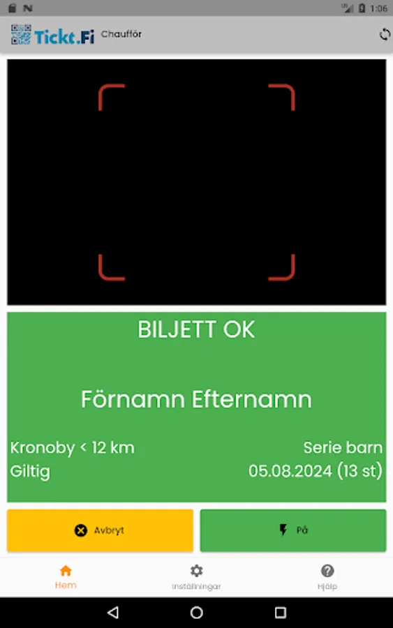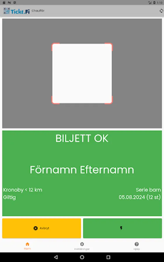 Download the Tickt.fi driver app to log in and read tickets from Tickt.fi. Tickt.fi is used by Kronoby municipality for school transport.