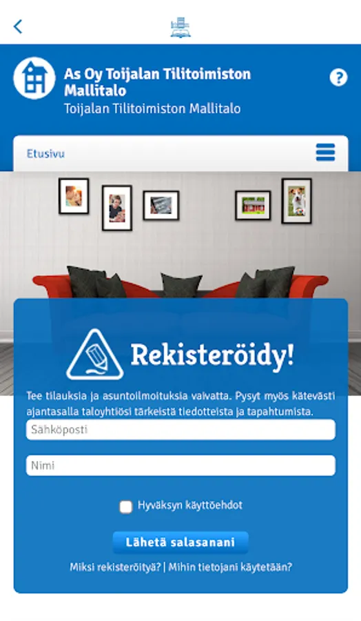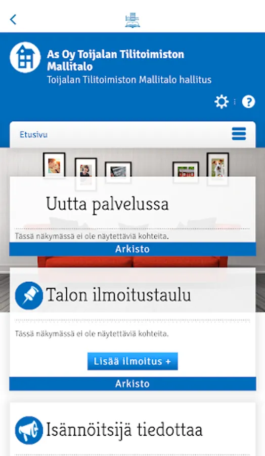 Welcome to Toijala Tilitoimisto's mobile resident portal - PORTTI. The necessary housing company information has been brought to the portal for residents, shareholders and the board to use easily and quickly when it suits you. This facilitates and improves the flow of information and transparency in managing the company's affairs. Toijala Tilitoimisto utilizes new technologies for the good of you and all of us.