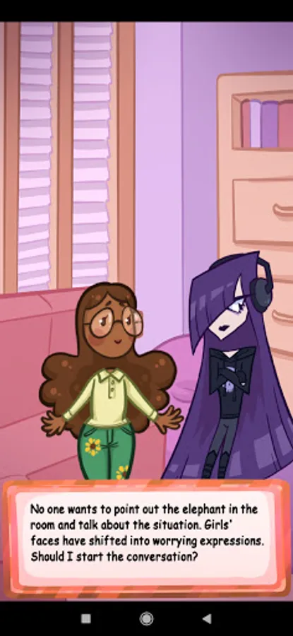 Choices you make have impact on the next levels difficulty. In order to progress smoothly you have to think hard on how to interact with others.