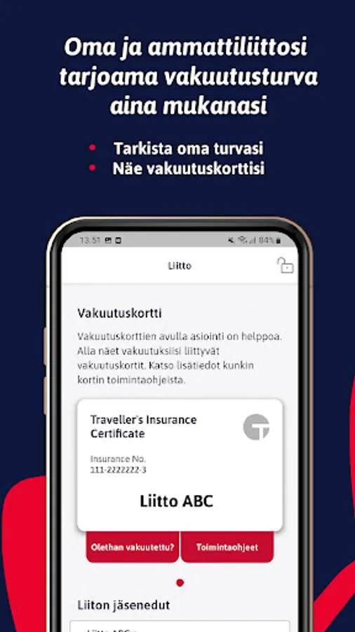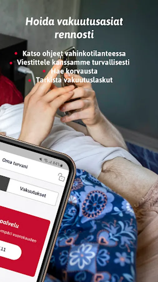 TaskuTurva is the mobile application of the insurance company Turva, where insurance coverage always goes with you conveniently. You will see both your own and your union’s insurance policies for you. In the event of damage, you can find operating instructions, the nearest medical facility or a garage. You can check your own security and insurance bill. Through the application you are connected to us securely, you can ask us for advice and apply for compensation. You can also find your insurance cards at TaskuTurva - they help you get the most out of your insurance!