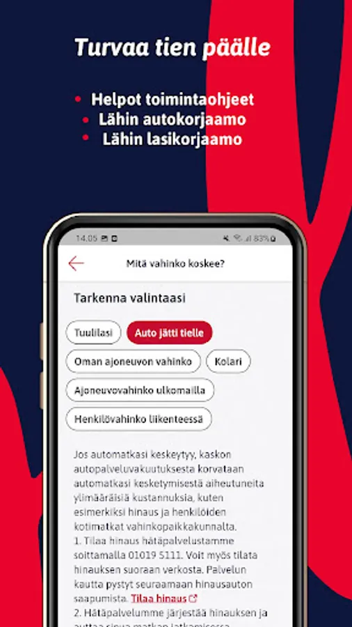 If it happens and happens on the road, you can find operating instructions and the nearest repair shop in TaskuTurva. You can contact our emergency service and if necessary a car towing will be arranged.
