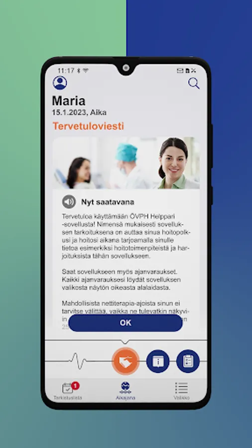 Ostrobothnia's mobile application Helppari offers the user comprehensive information about the procedure, appointment booking and treatment instructions, which always accompany him. This information is displayed on the mobile device in chronological order. He receives various reminders and instructions to acknowledge and forms to fill in to support the success of the procedure and treatment. The information provided by the user is always visible only to healthcare professionals. In addition, through the application, you can inquire about non-urgent matters related to treatment and procedures.