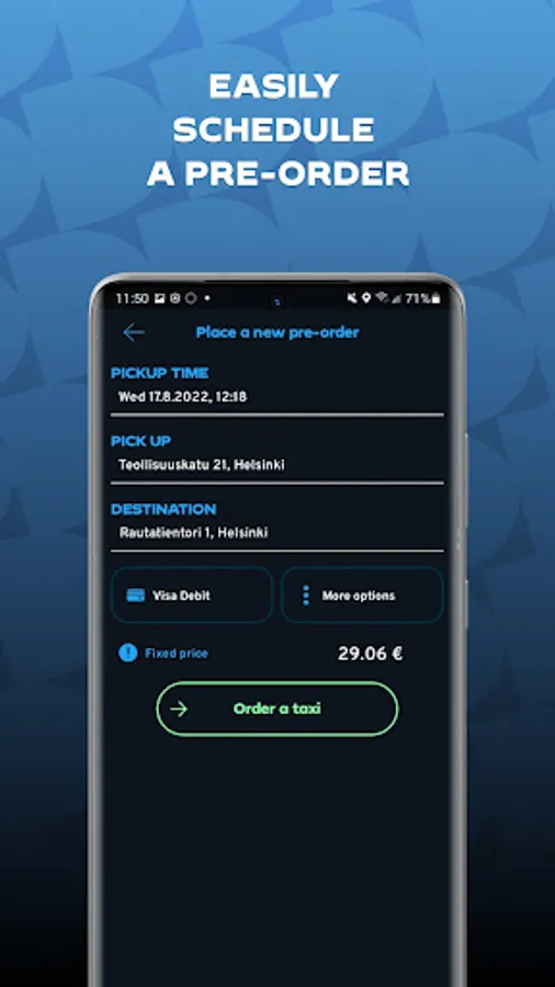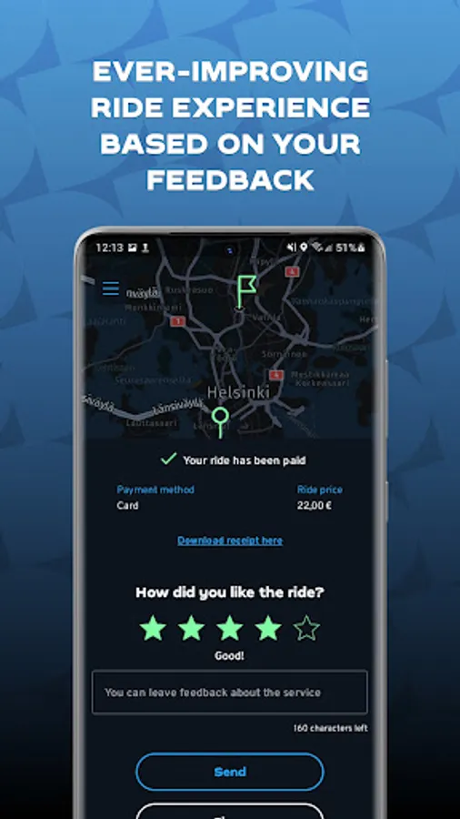 With the completely renewed Valopilkku app, ordering a taxi is quick and easy all over Finland. You can pay for your ride conveniently with a sensible fixed price in the app. You can choose a car based on your needs and then enjoy a reliable and high-quality ride. We highly appreciate your feedback from the ride that we could improve the ride experience.