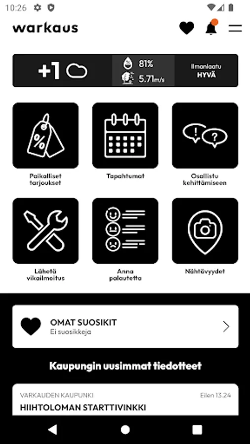 Tasku Warkaus is an application where you can find events and attractions in Varkaus, the best benefits and offers, and you can influence and participate.