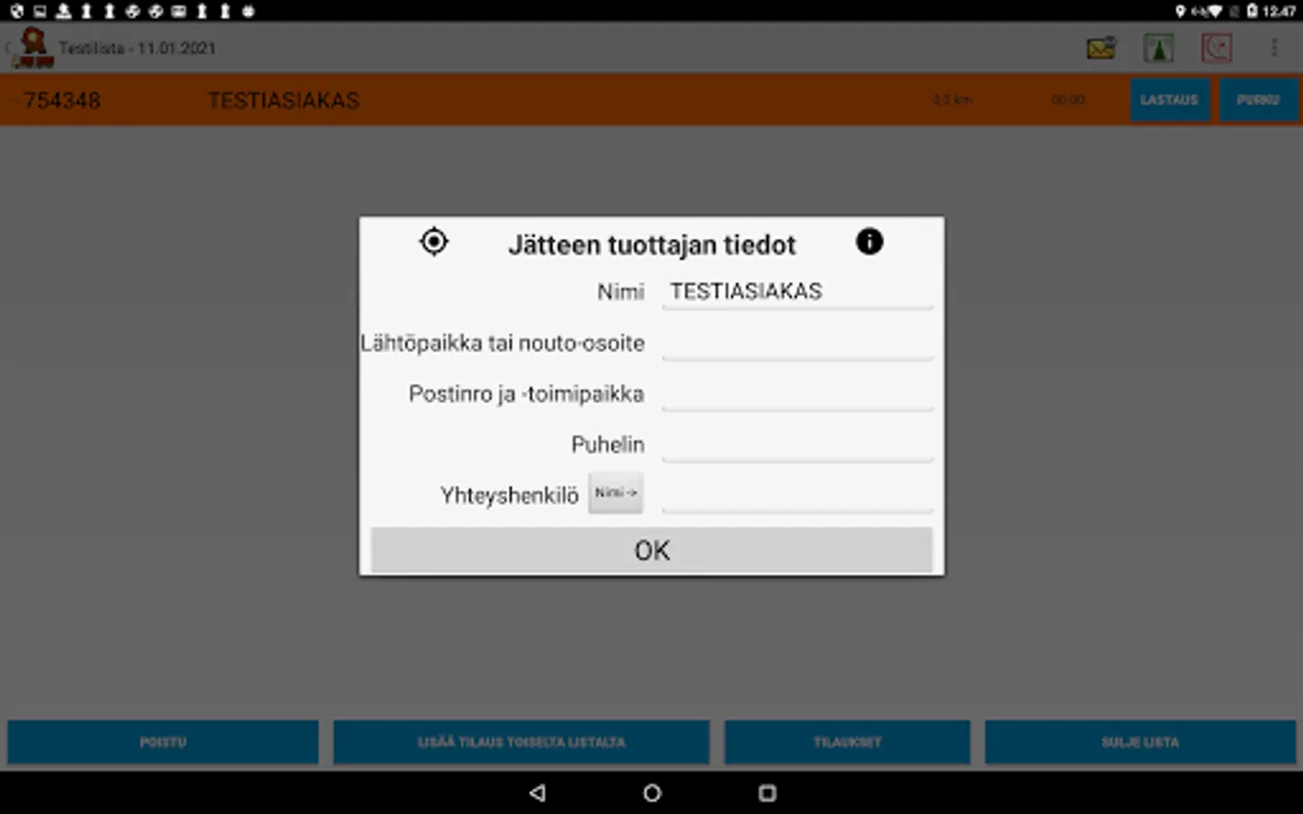An application developed for Napapiirin Kuljetus Oy's cargo times.