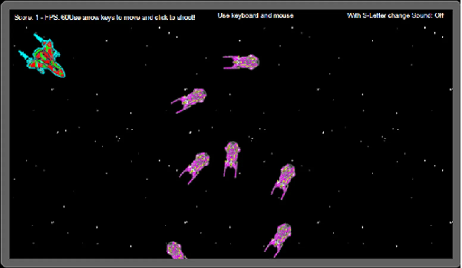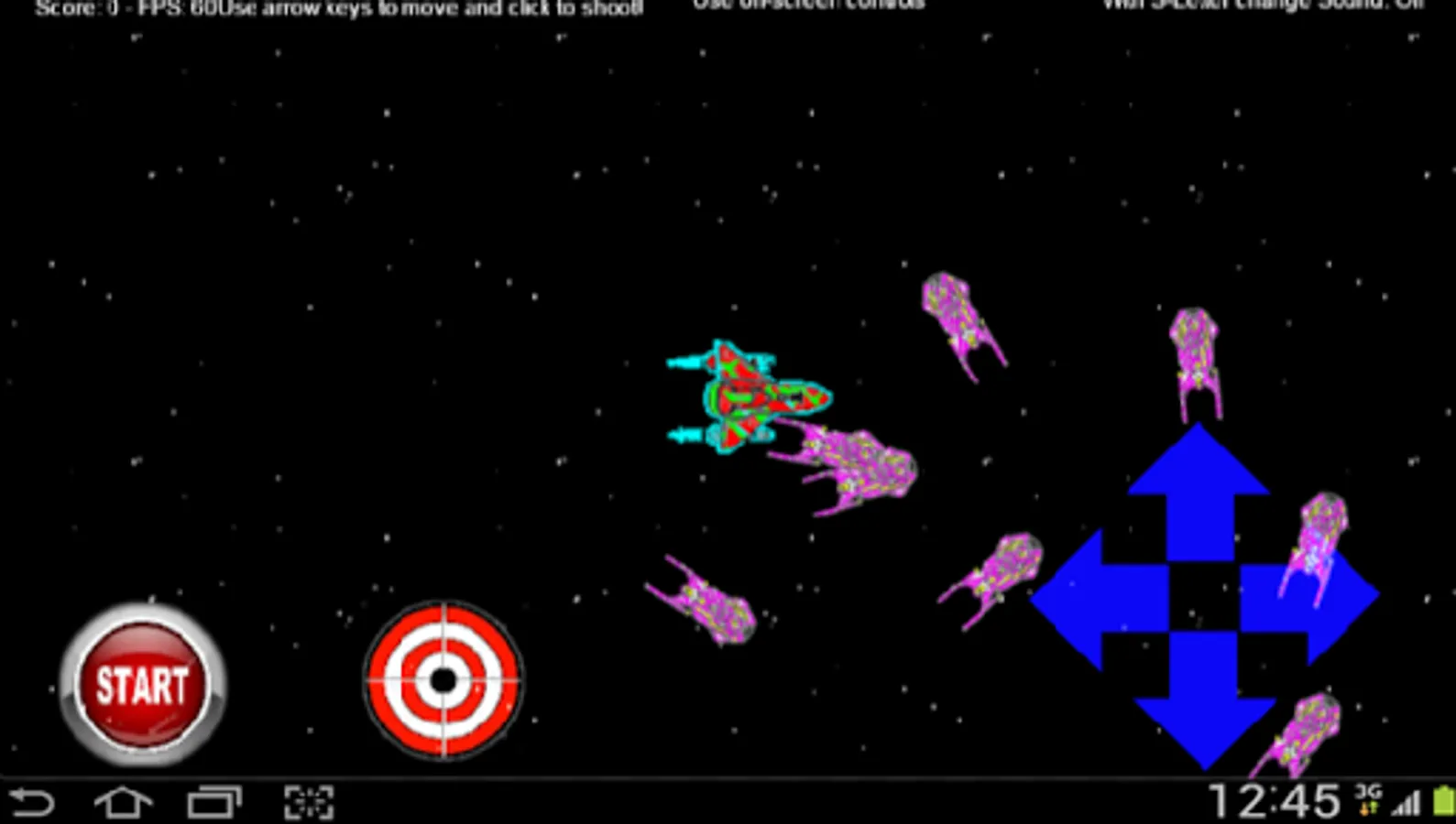 Game works with touch screen or keyboards. With s-key you get fighting, laser and explosion voice away.