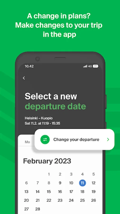 Sometimes things don’t go as planned. In the VR Matkalla app, you can also make changes after buying the ticket. You can easily change your seat and departure time yourself. If needed, the change can be made to the tickets of the whole travel party. If you’ve bought cancellation insurance, you can also cancel your journey in the app for free if plans change.