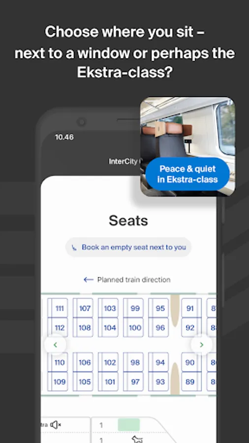 You can conveniently reserve a seat using the coach map when buying a ticket. You can also buy the seat next to you and enjoy the extra space. If you want to add a touch of luxury to your journey, you can travel in Ekstra Class or the restaurant car’s upstairs section, which offers the best view. You can also buy a ticket for your travel companion, bicycle, or pet.