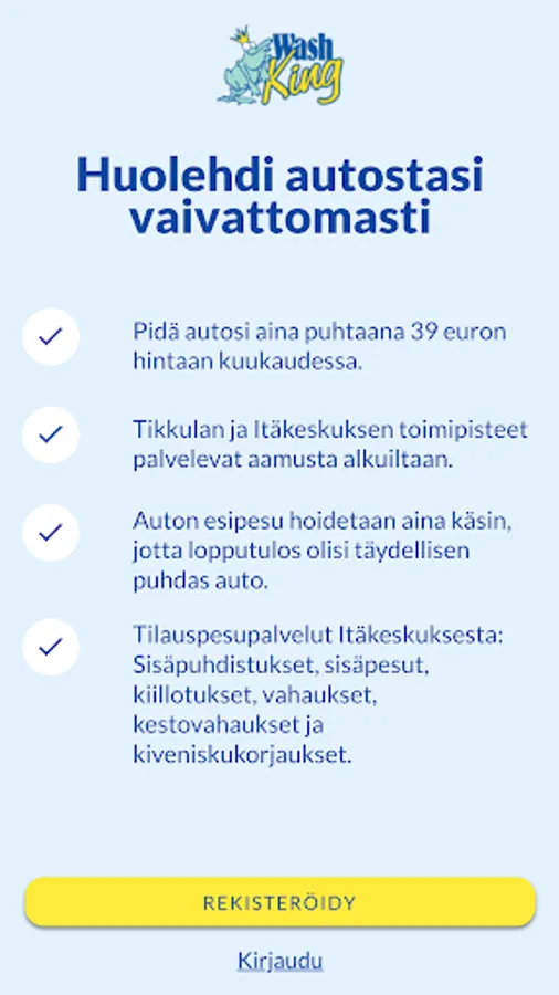With WashKing, you always keep your car clean. You can pay for individual washes or you can buy a service that washes your car whenever it requires washing.