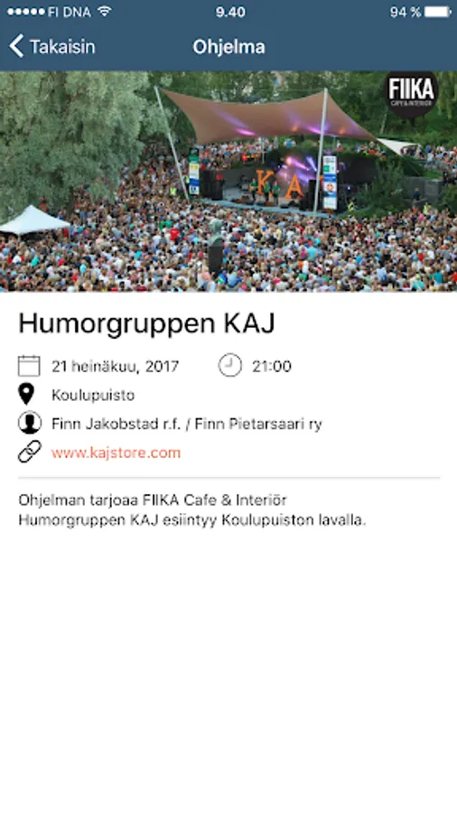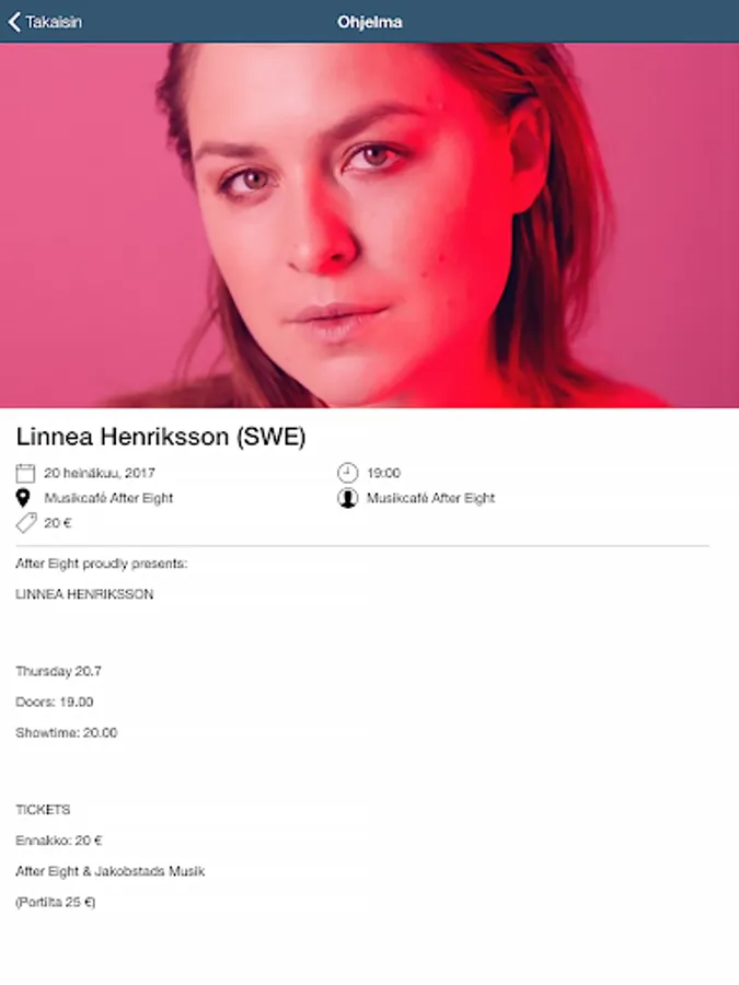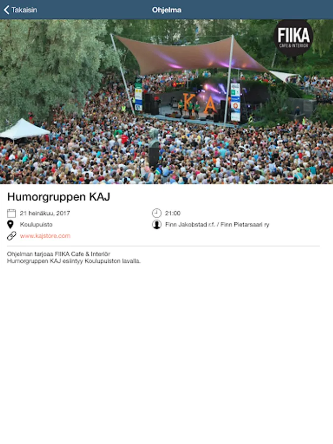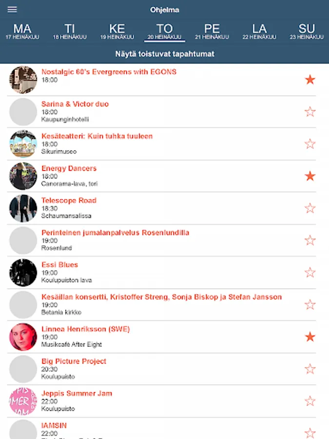 Your guide to all the performances, acts and happenings in Jakobstad during this fantastic week. Mark your favorites, get notifications when your favorite events are about to start, and much more.