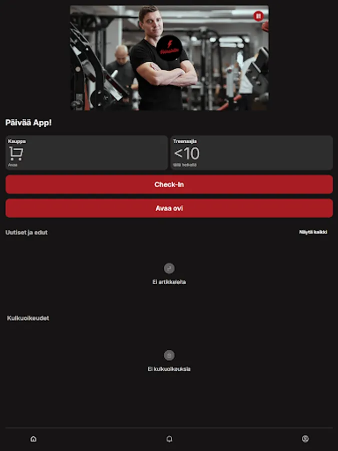 Whether you are already a member of Voimalaitot or just want to become one, our mobile application is your interface to our services. You can use it to start working out with us, use a mobile gym card, communicate with our customer service and much more!
