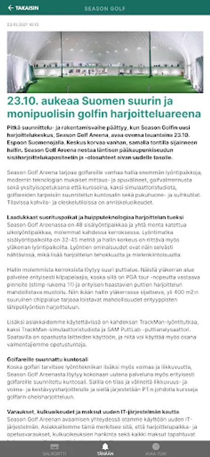 Whether you are already a member of Season Golf or just want to be one, our mobile app is your interface to our services. You can use it to start training with us, use a mobile hall card, communicate with our customer service and much more!