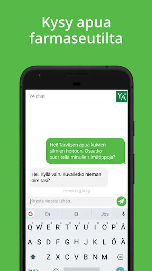 - Important services that make your pharmacy easier, such as counters that allow you to calculate the delivery interval of your medicines or Kela reimbursements. In addition, you can set a YA Reminder to remind you to purchase your regular medication or to take your YA Medication Assistant medication at the right time.